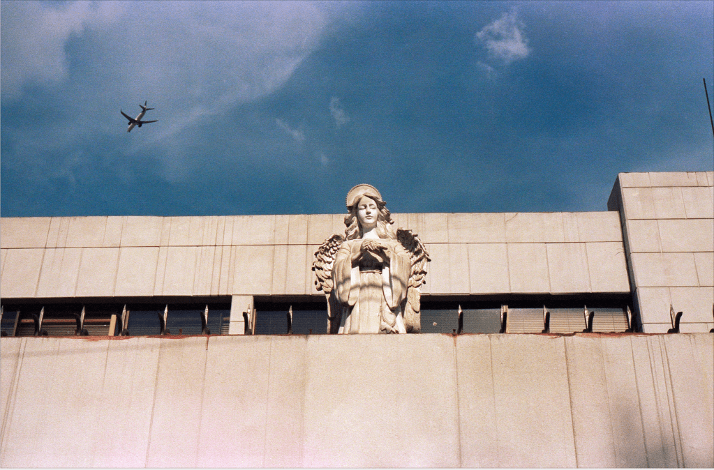 Los encuentros que se ilustran en esta serie, yuxtaponen íconos e imágenes de creencias del pasado y del presente que conviven por un breve momento en el cuadro fotográfico.